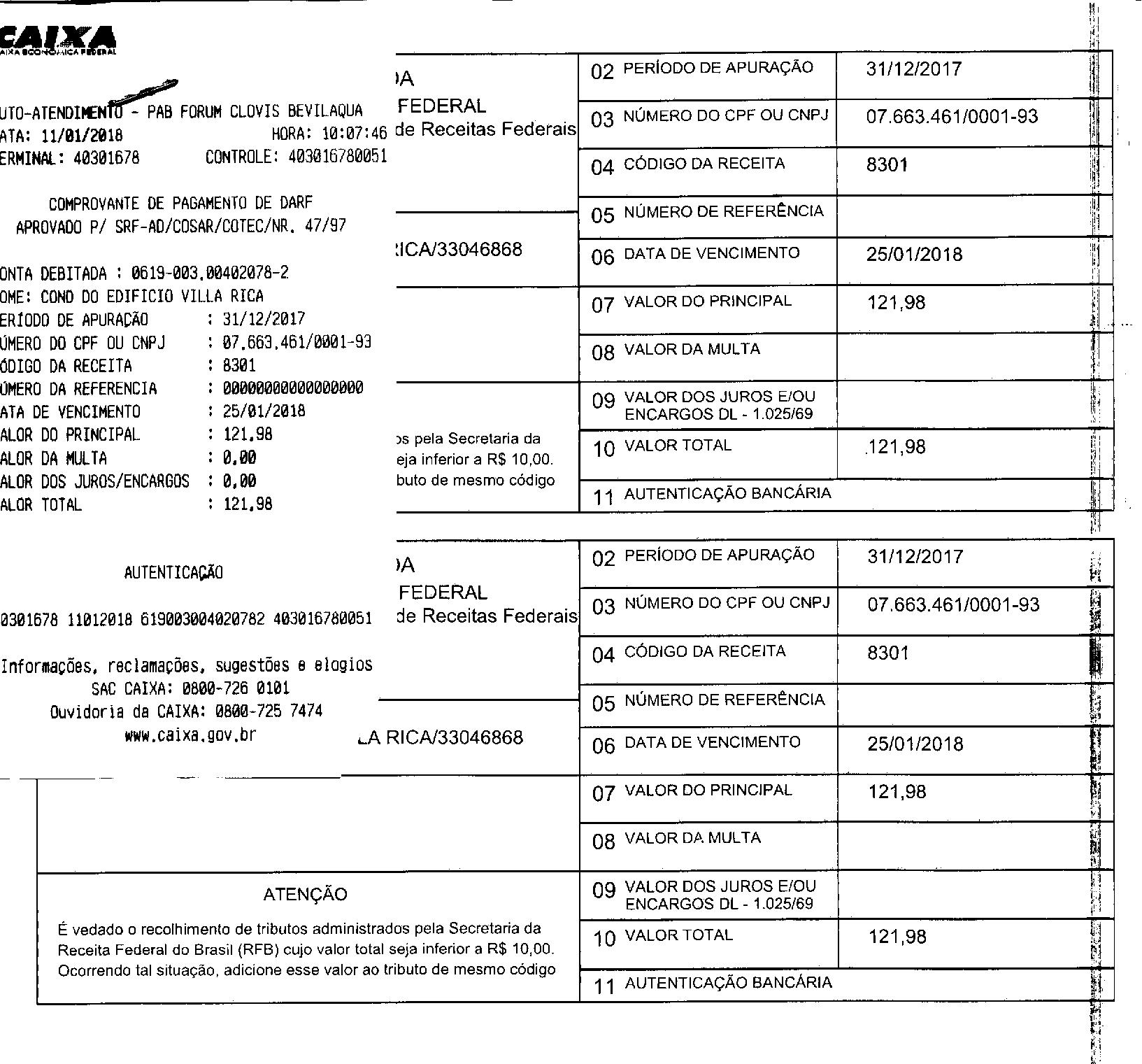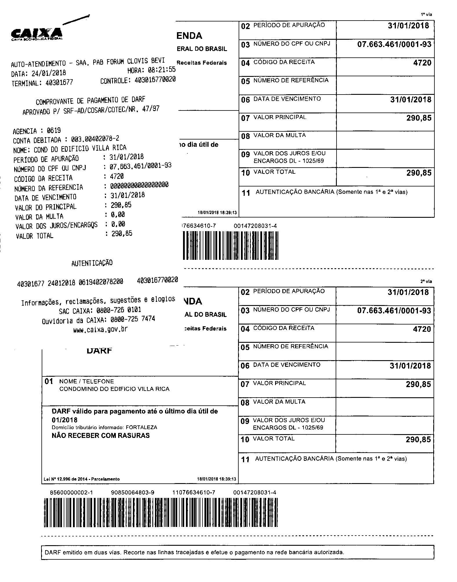 Duas unidades não efetivaram o pagamento da cota de janeiro