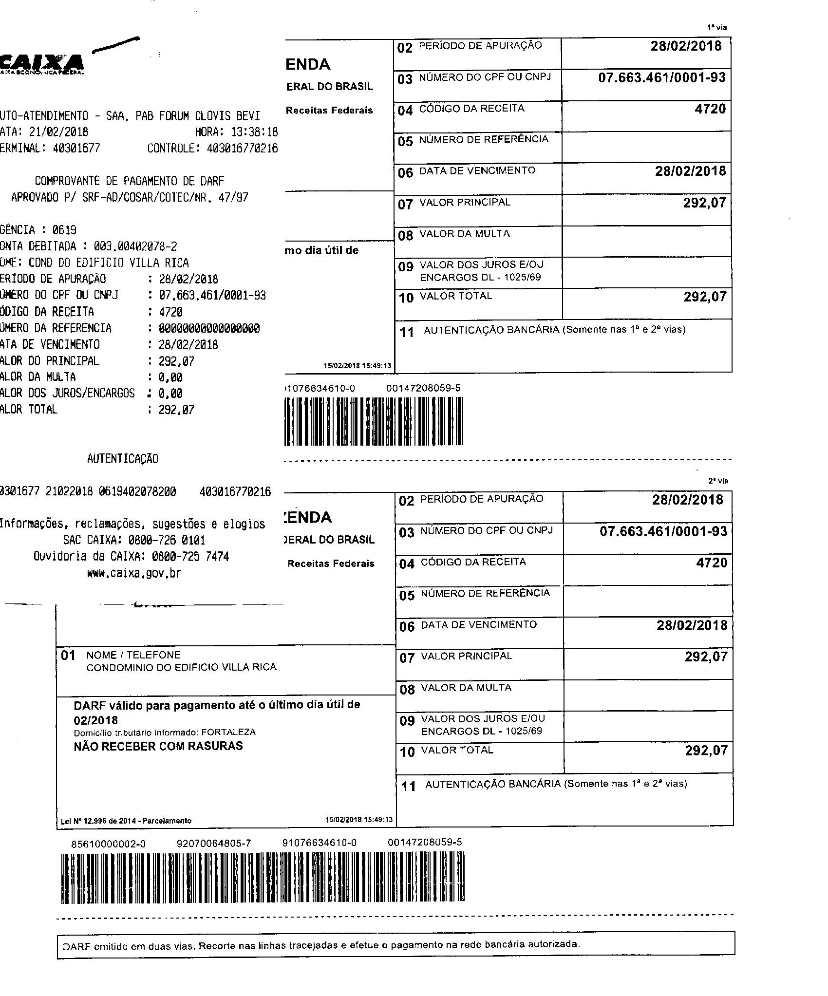 Duas unidades não efetivaram o pagamento da cota de FEVEREIRO |